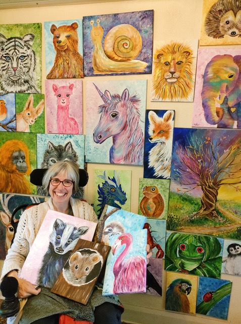 ![]() | I’m Nat, I have painted all the animals for our book, and I have loved every second of it. I had never painted or done art before I was ill and I now find it is my freedom, and my way to express who I now am. I had never painted an animal until last year and I thought I would have a try. Silverlining believed in me and encouraged me to do more. I have loved creating characters for my friends I’ve made through the Charity. As soon as I paint the eyes, the characters come to life and a new story comes to life! I am part of the Creative Writing Group, the Art Group, and the Photography Group and I just can’t believe we have written and created a book together! I feel so proud of what we have all achieved and so grateful to be given the opportunity! To have been part of this has meant everything and has given me so much to focus on, to achieve, and to care about. I feel so grateful to everyone for believing in me and believing in what I can, and we can all do. I love our groups and feel we have become so close through doing this and I have made so many new friends and developed new skills. I also feel so happy to be able to have found a way that I can hopefully help other people who are going through brain injury. I feel very emotional, happy, and proud! Thank you for believing in me, out of everything I’ve done in my life, this has to be one of my biggest achievements! |